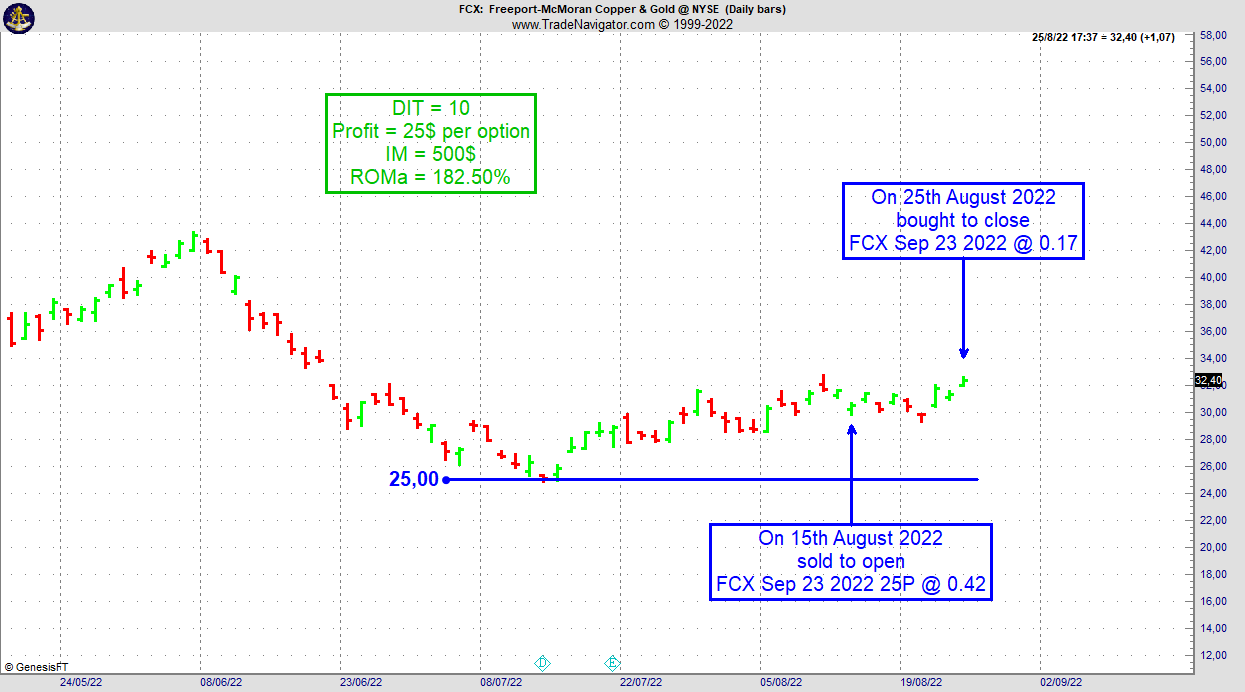 For FCX, we caught a short term swing low when we sold FCX Sep 23 2022 25P @ 0.42 on 15th August 2022.
